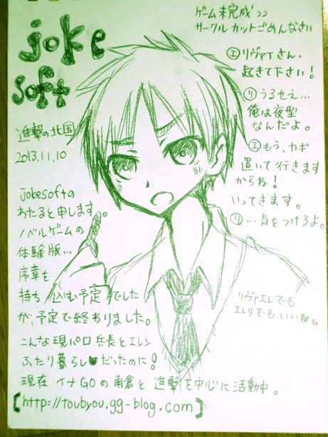 個人サークル「ジョークソフト」の同人記録・報告ブログ。ハイキューにまっしぐら。