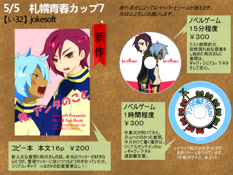 個人サークル「ジョークソフト」の同人記録・報告ブログ。ハイキューにまっしぐら。