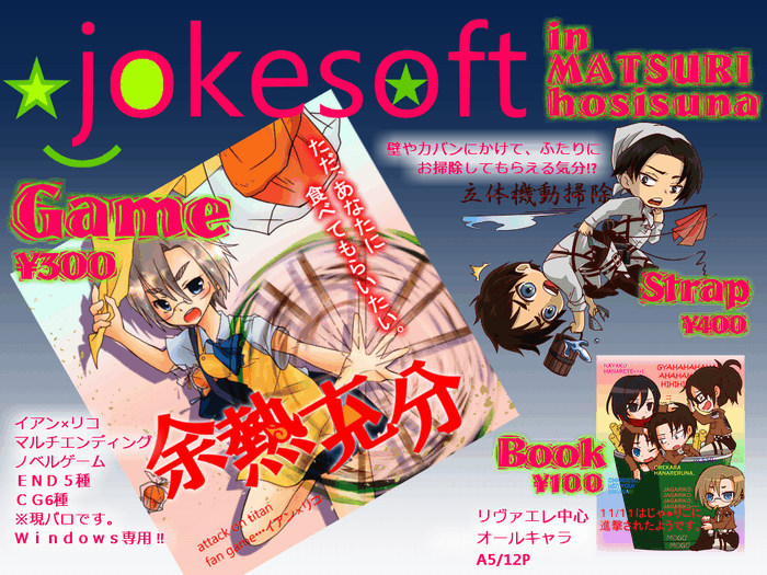 個人サークル「ジョークソフト」の同人記録・報告ブログ。ハイキューにまっしぐら。