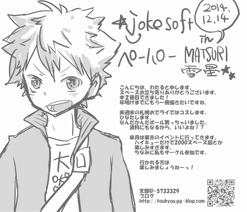 個人サークル「ジョークソフト」の同人記録・報告ブログ。ハイキューにまっしぐら。